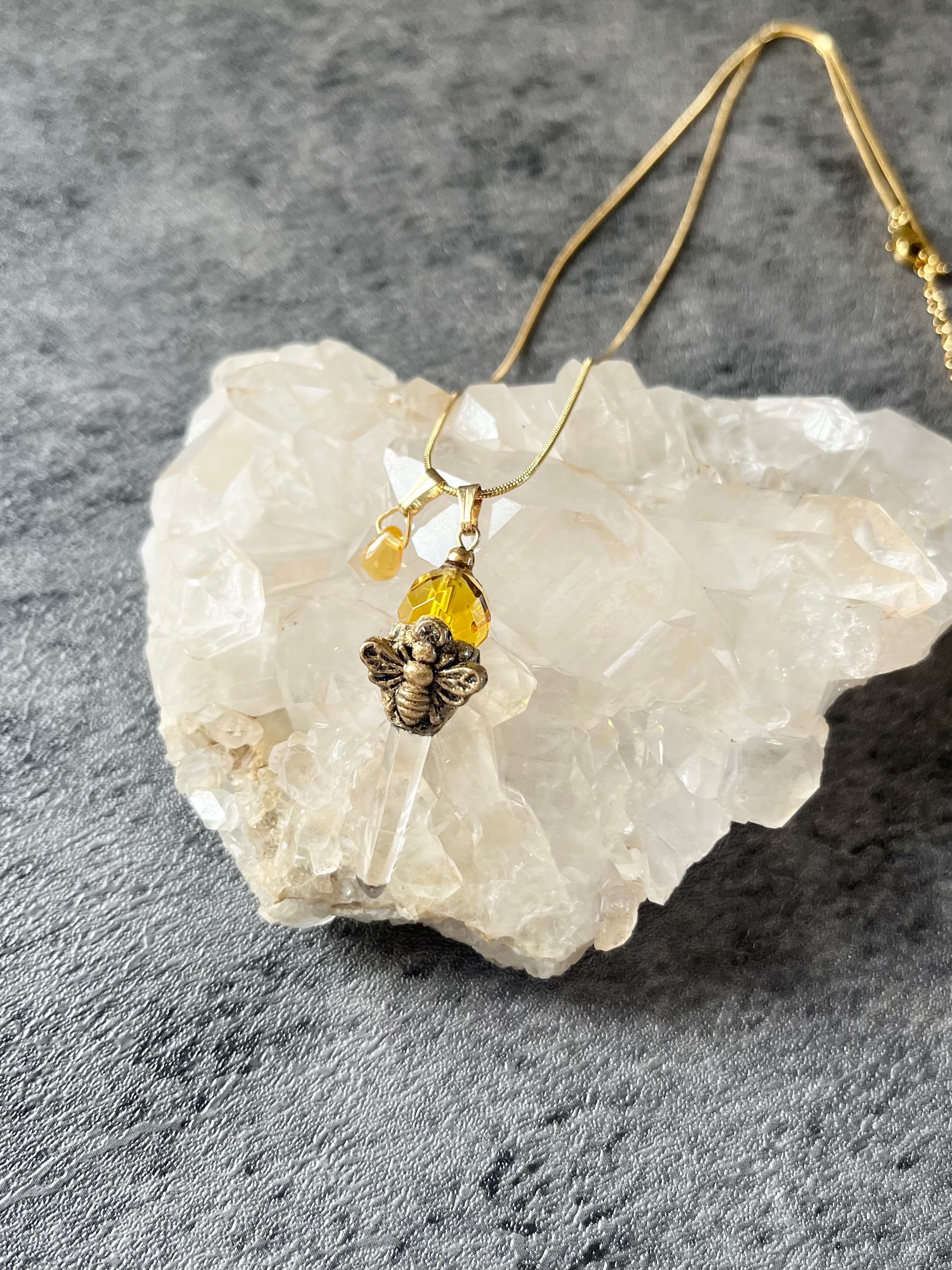 美しいカットビーズシトリンがついた蜂さんミニワンドをメインに、蜂蜜を連想させるようなチェコビーズを組み合わせました。