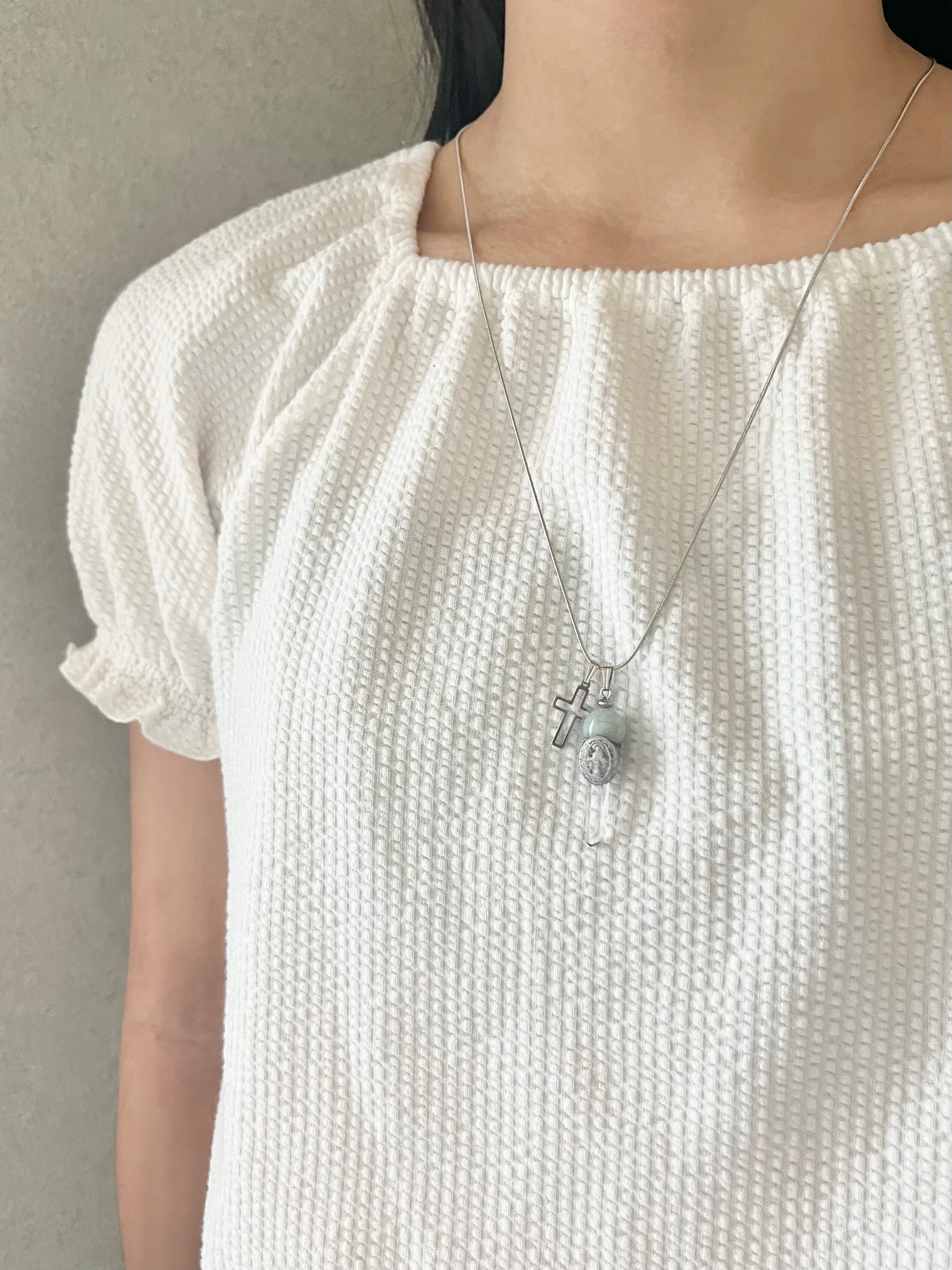 マリアのメダイチャームを埋め込んだワンドのトップに、クロスチャームを組み合わせた魔法のネックレスです。