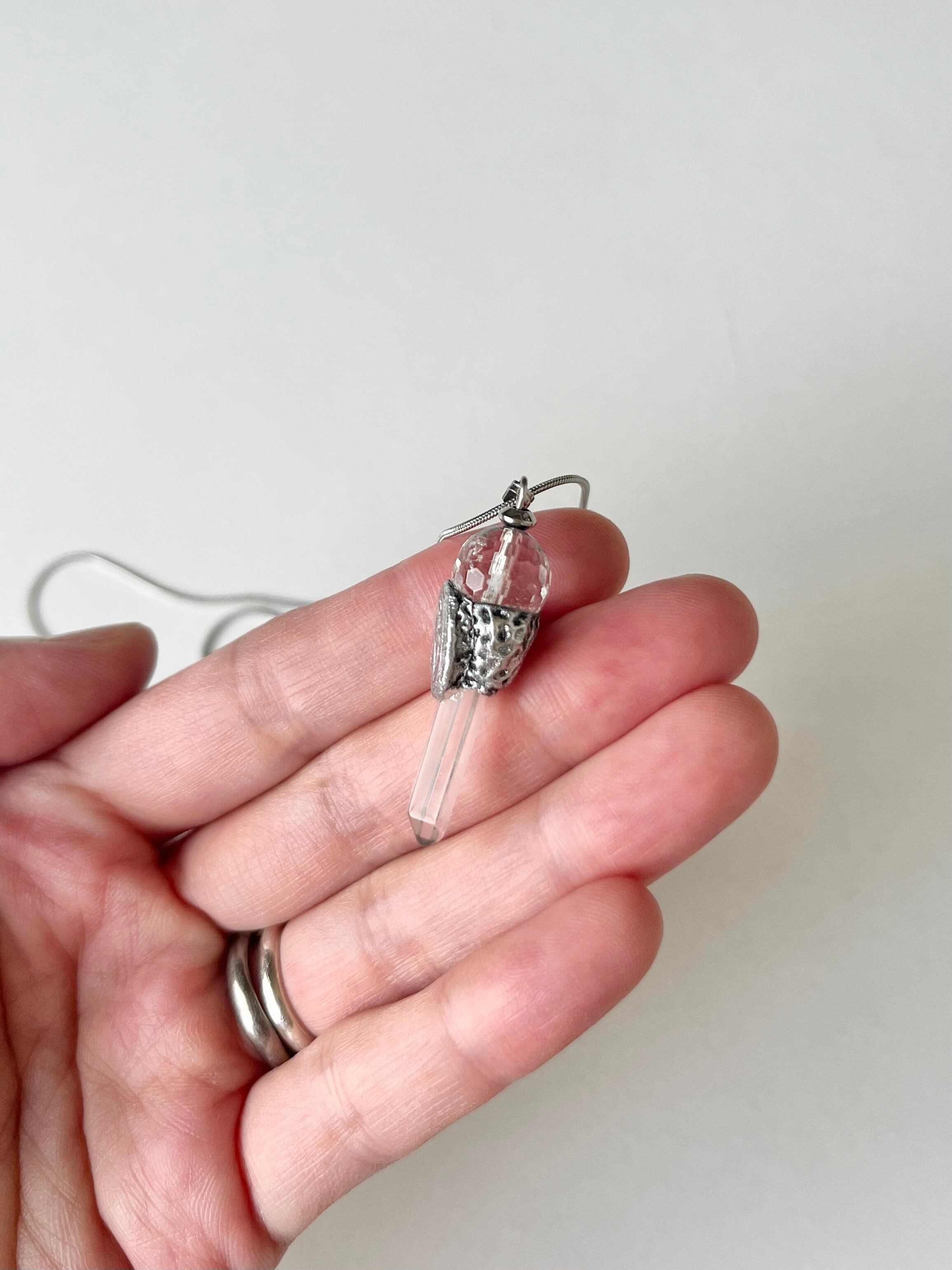 クリアクォーツはカット加工がされているため、キラキラと光を放ちます。