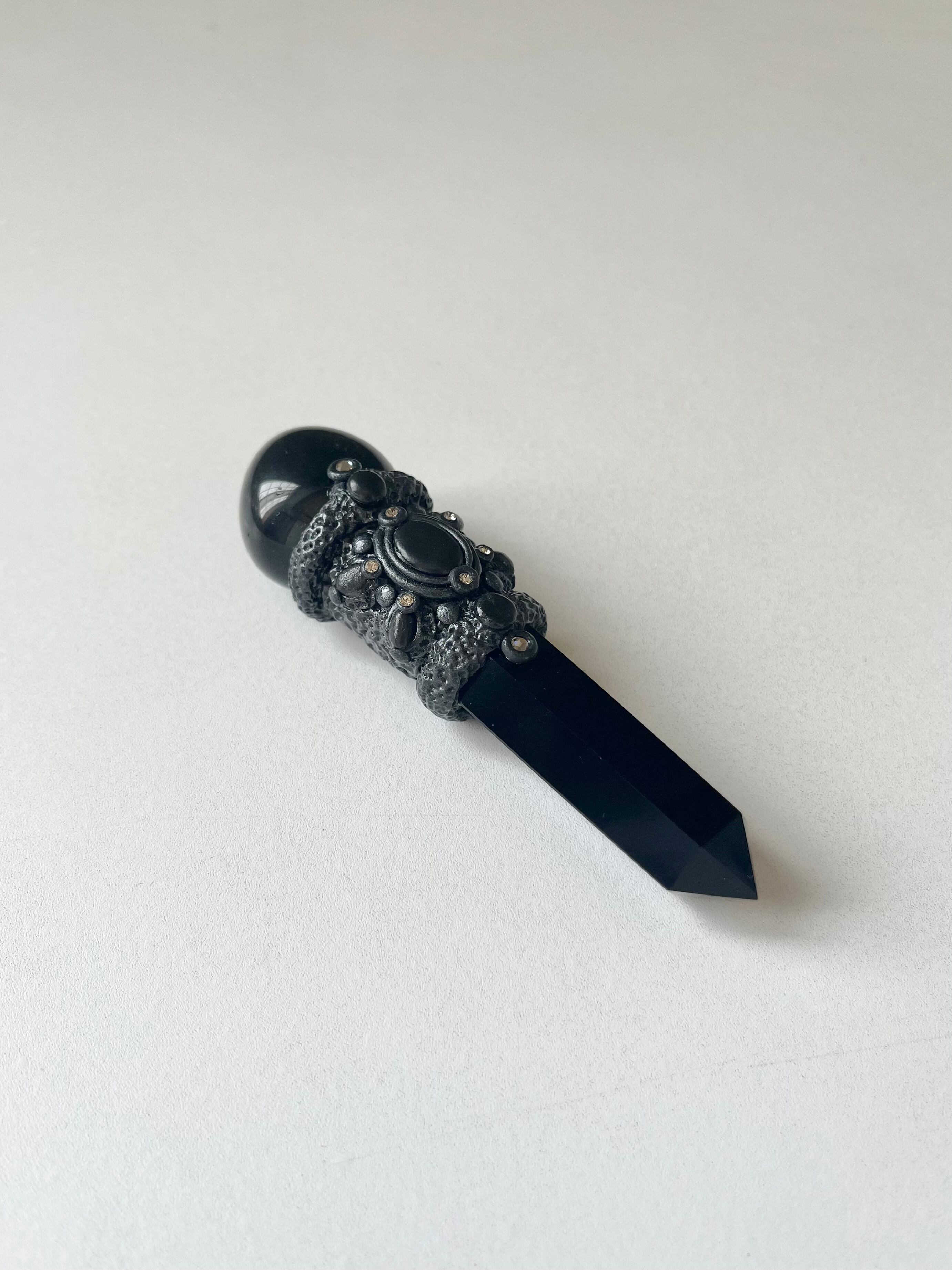 オールブラックワンドは使用する石や粘土全てが黒色のため、”境界線”や”バランス”の技術を要します。