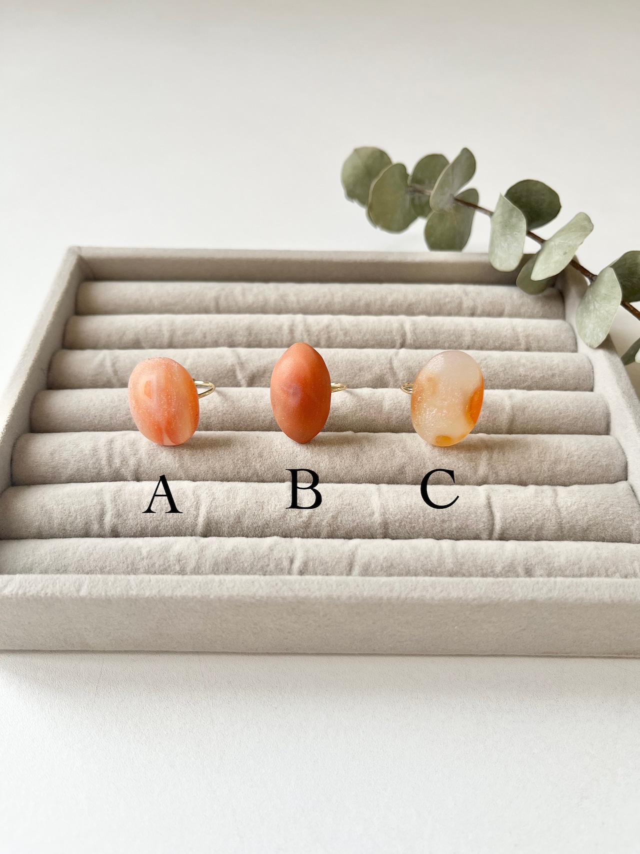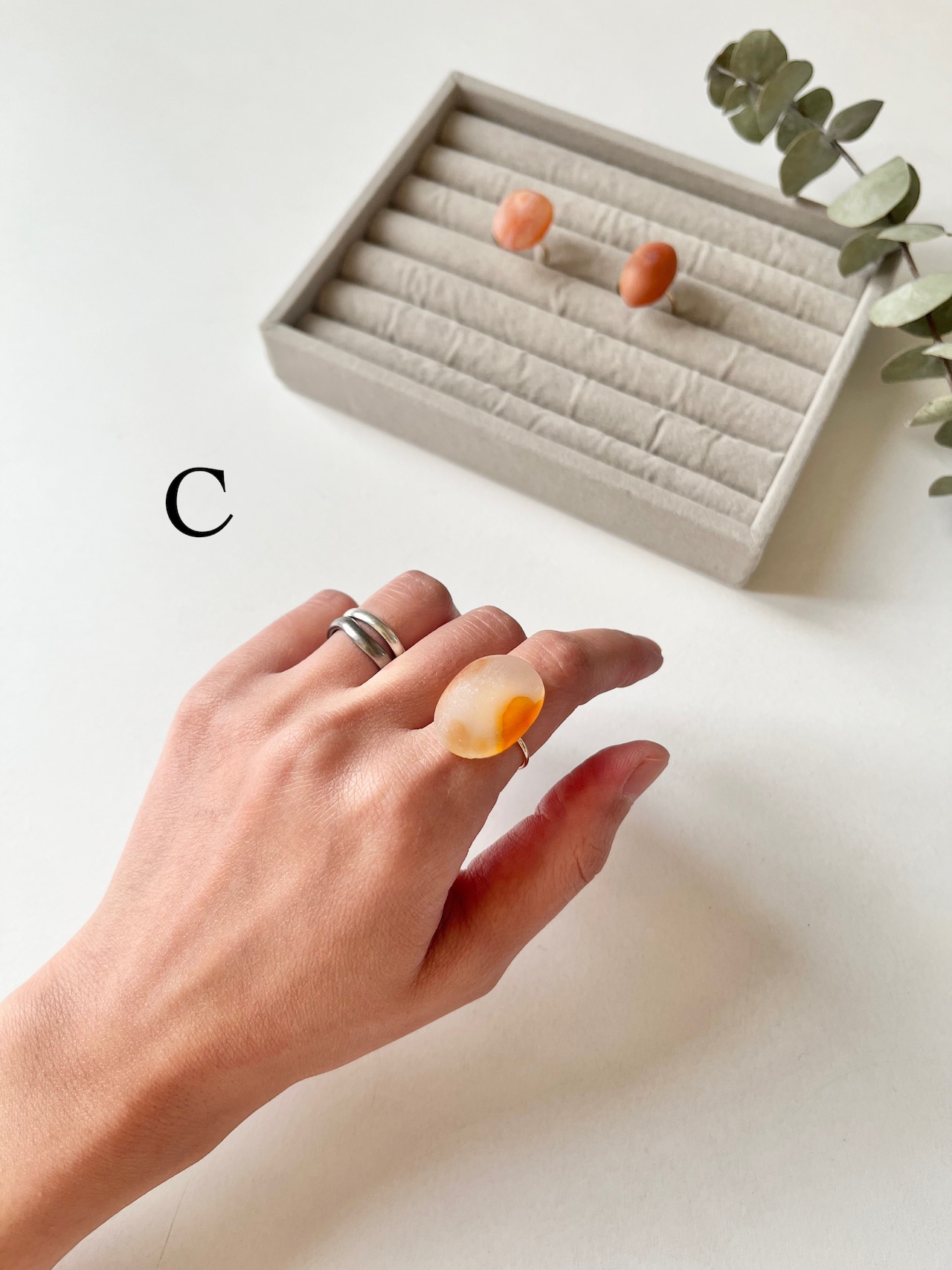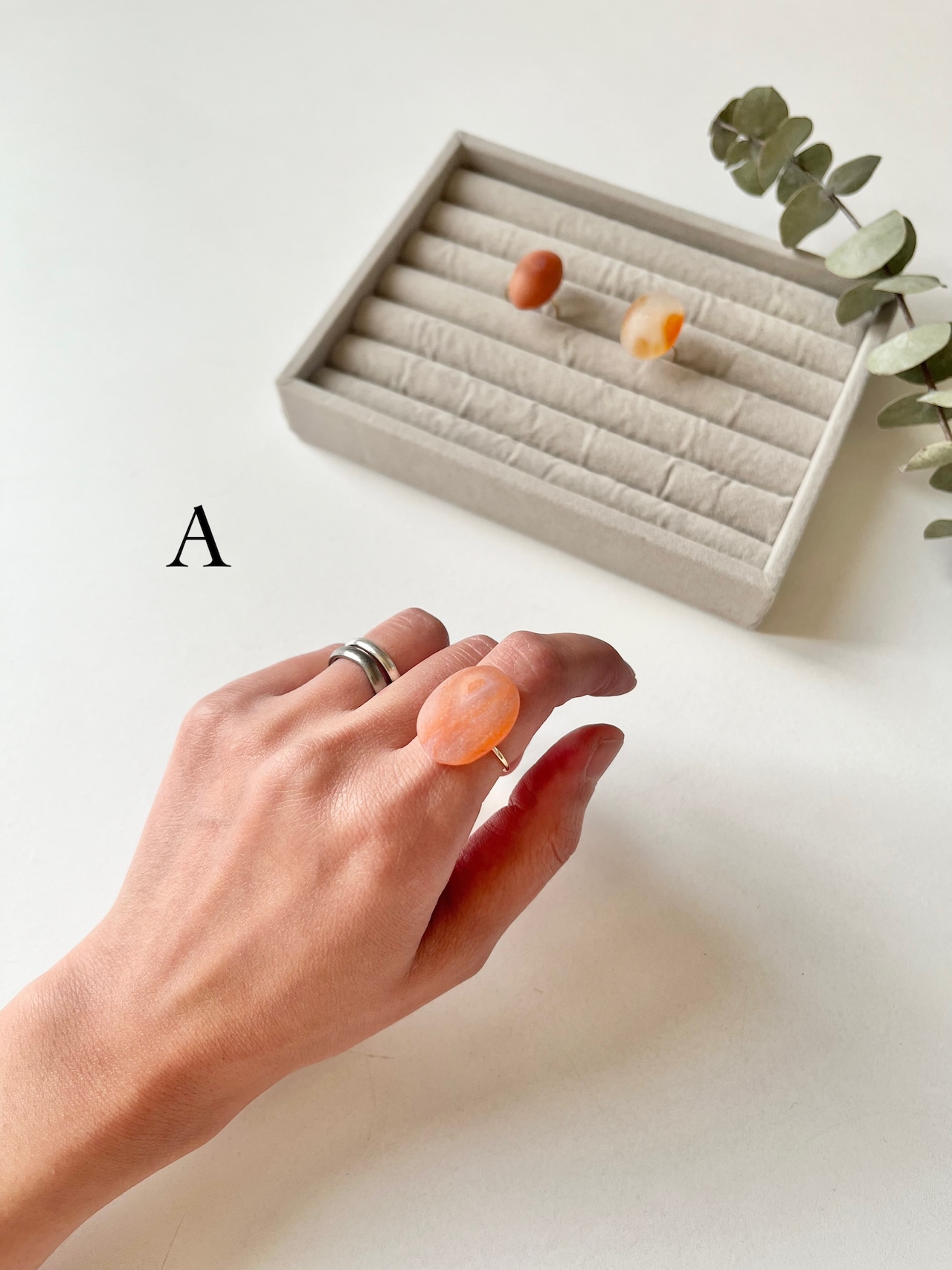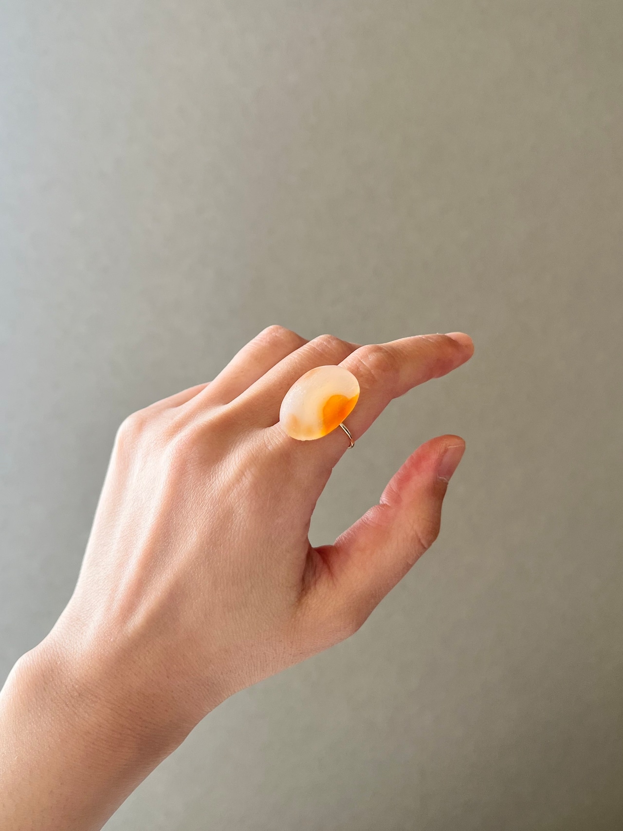 様々な模様と色味、キャンディードロップのような北海道産瑪瑙をリングにしました。