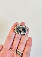 樹脂粘土で石を加工しゴールドとシルバーのバイカラーにすることによって、アクセサリー選びの幅が広がるようにしました。