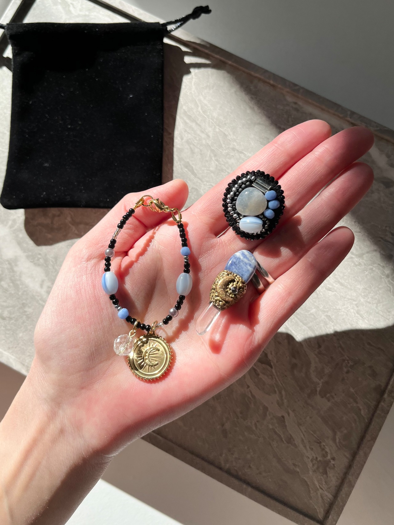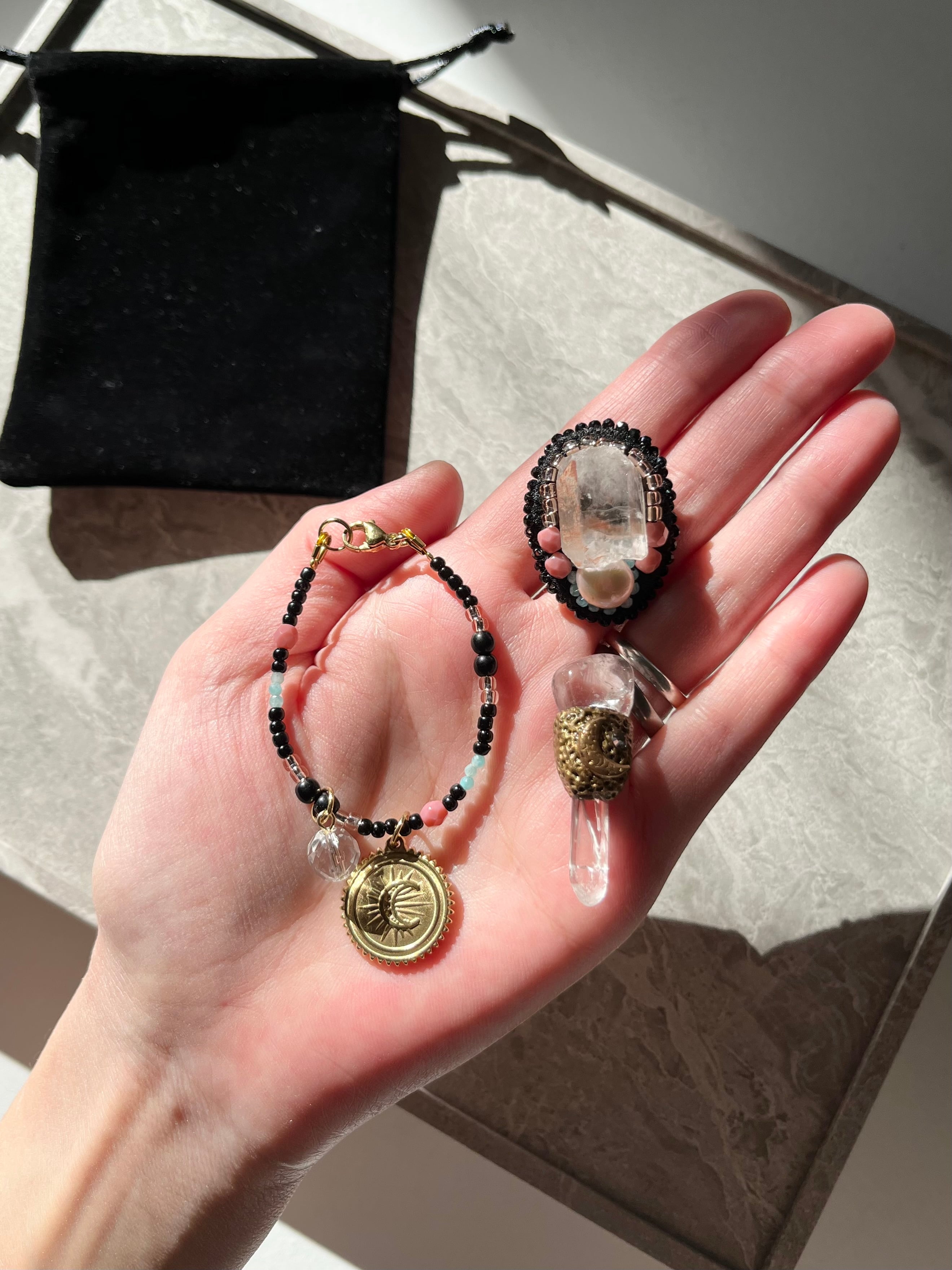 また天然石の種類によっては日光に長時間当てると色が変わるものもございます。(フローライトなど)
