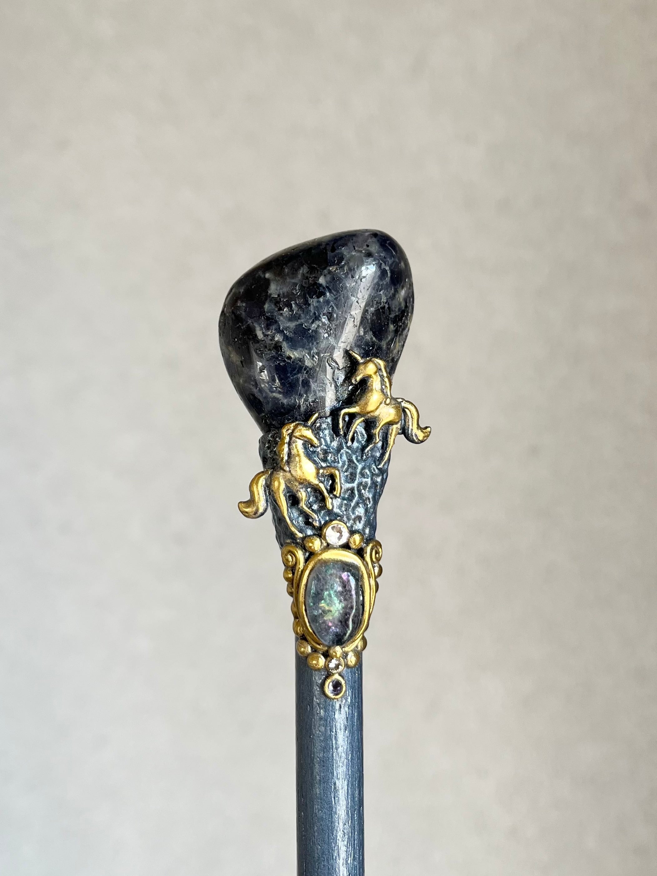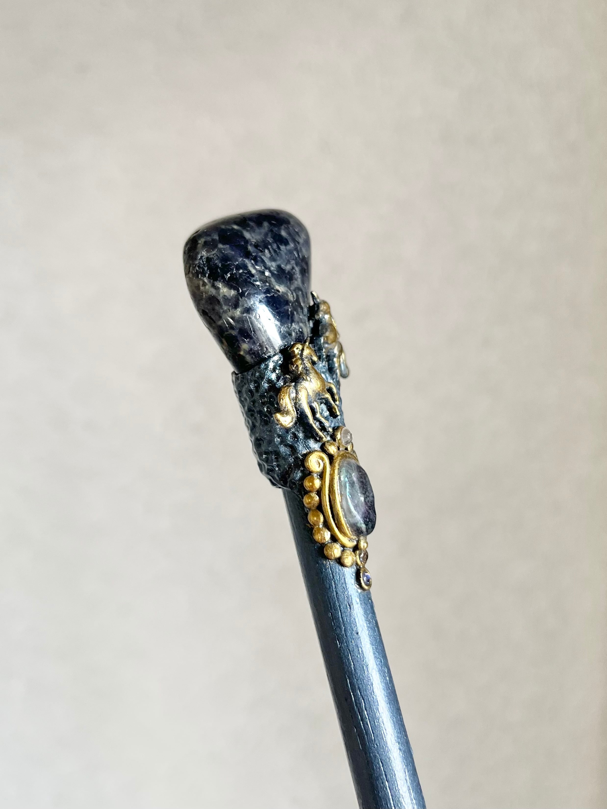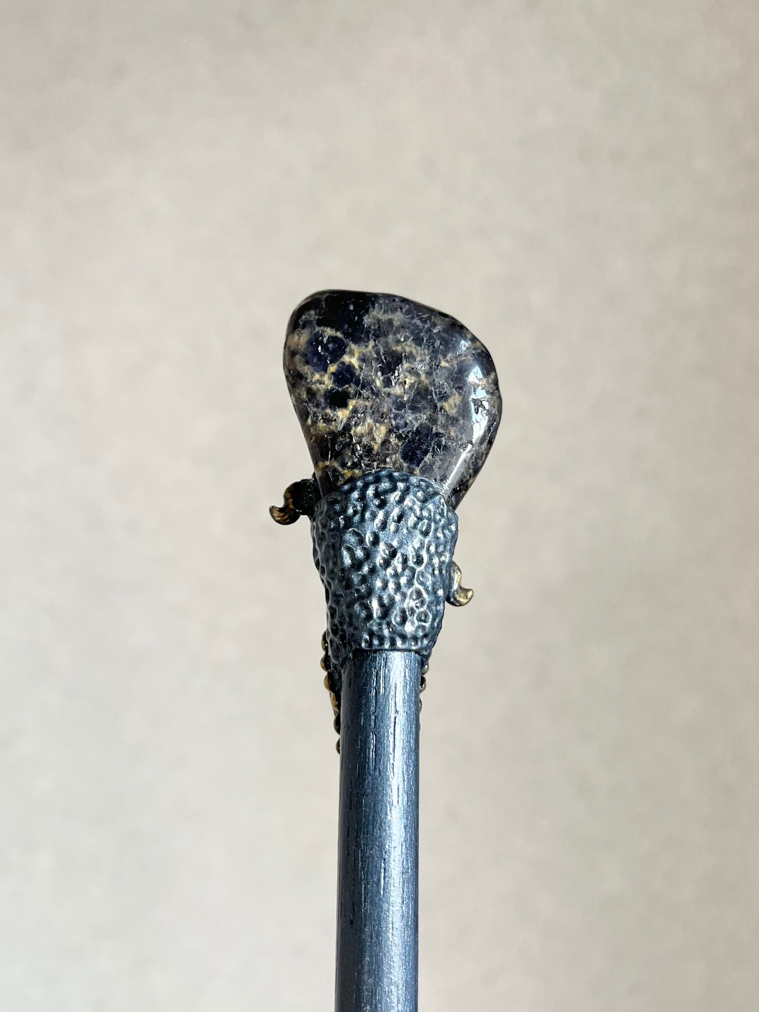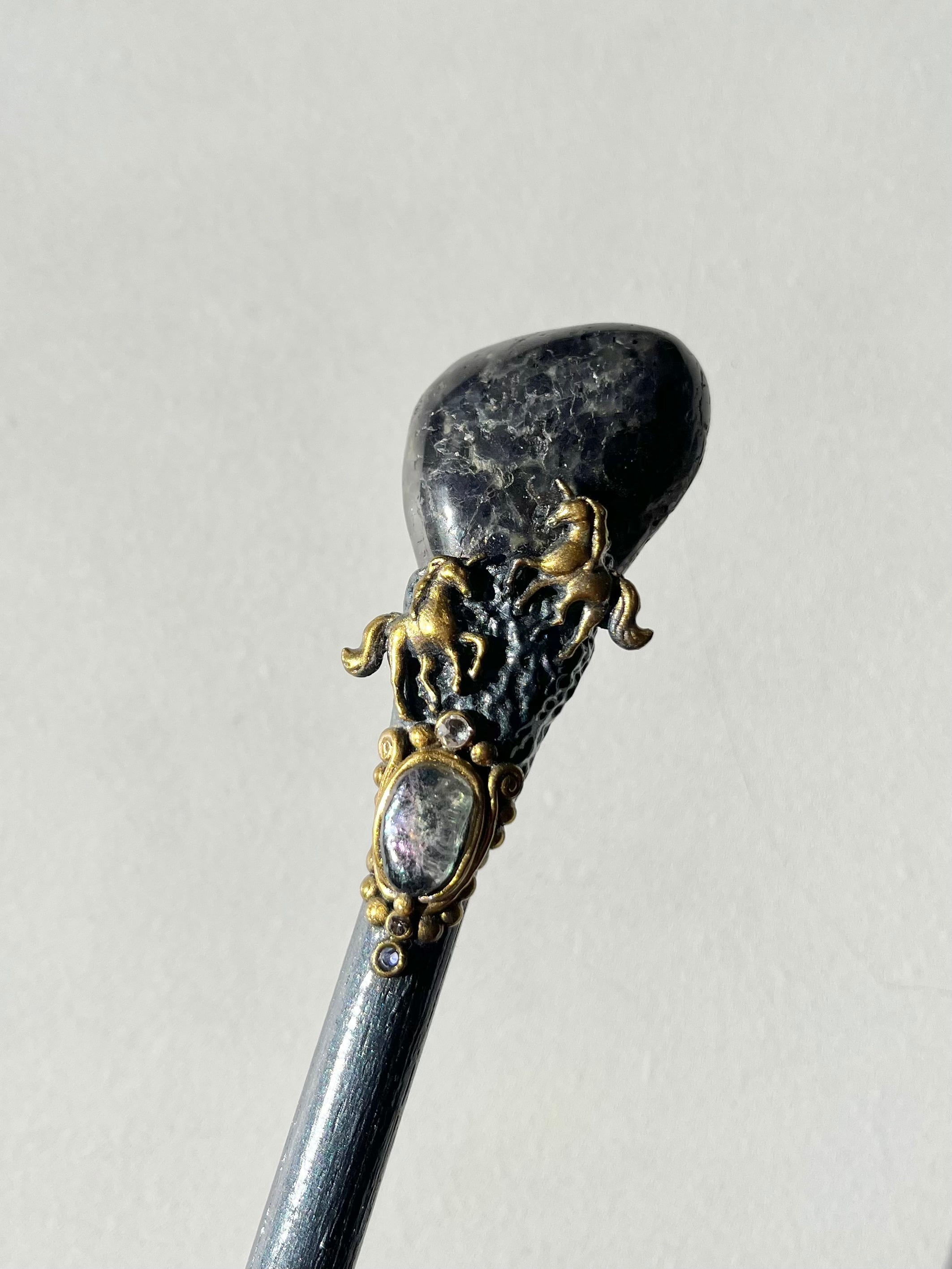 天然石、樹脂粘土、アクリル絵具、ニス、ガラスストーン