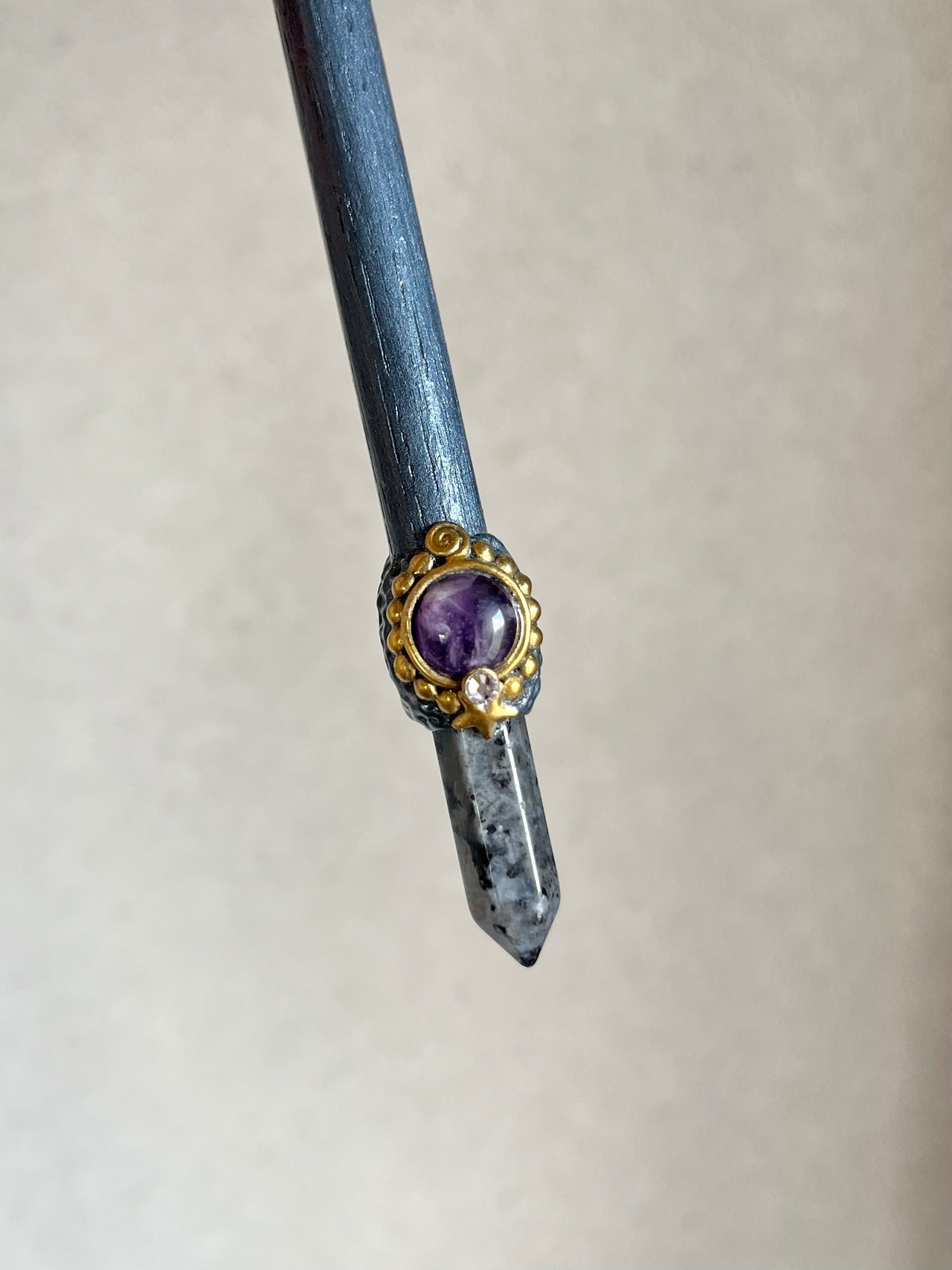 埋め込みの石 上から…エンジェルオーラクリアクォーツ、アメジスト